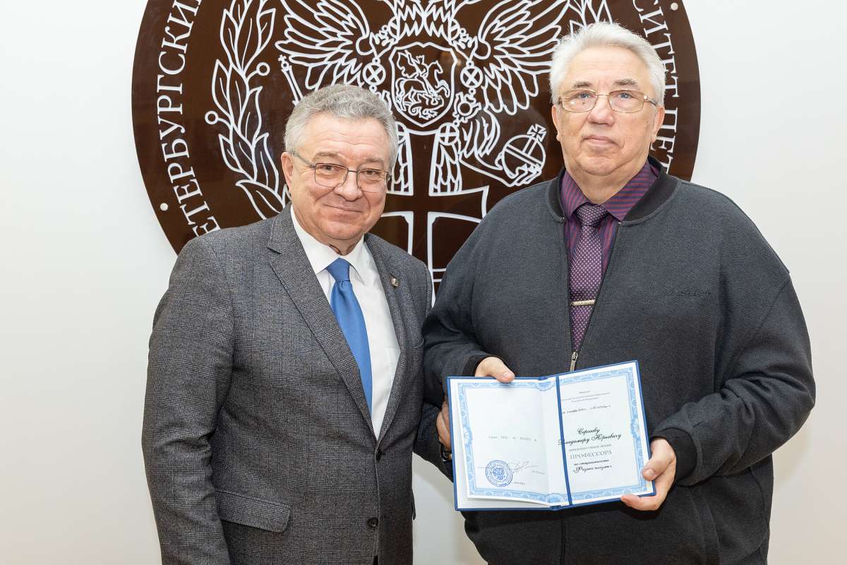 Аттестат профессора по специальности «Физика плазмы» был вручен доктору физико-математических наук Владимиру Юрьевичу Сергееву.